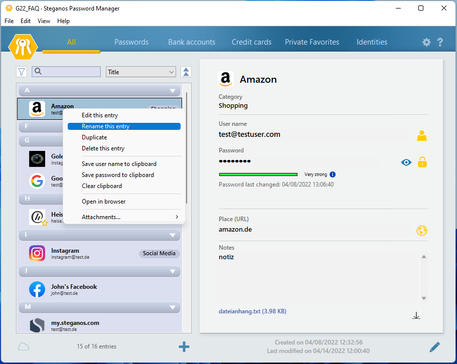 Se quiser renomear uma entrada existente, clique com o botão direito do rato na entrada da lista e seleccione "Renomear esta entrada".