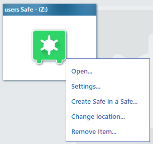 Se por alguma razão quiser remover um Safe da vista geral principal do Steganos Safe, basta fazer um clique com o botão direito do rato no Safe correspondente e depois seleccionar "Remover Item" no menu de contexto.